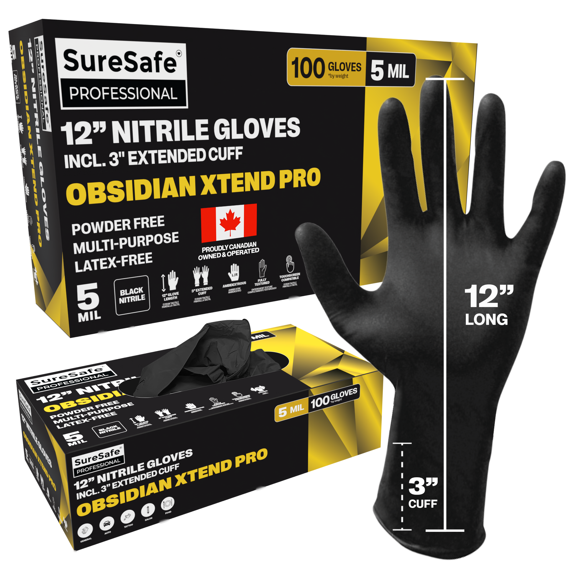 SureSafe OBSIDIAN XTEND 12" Black Nitrile Disposable Gloves, 5MIL